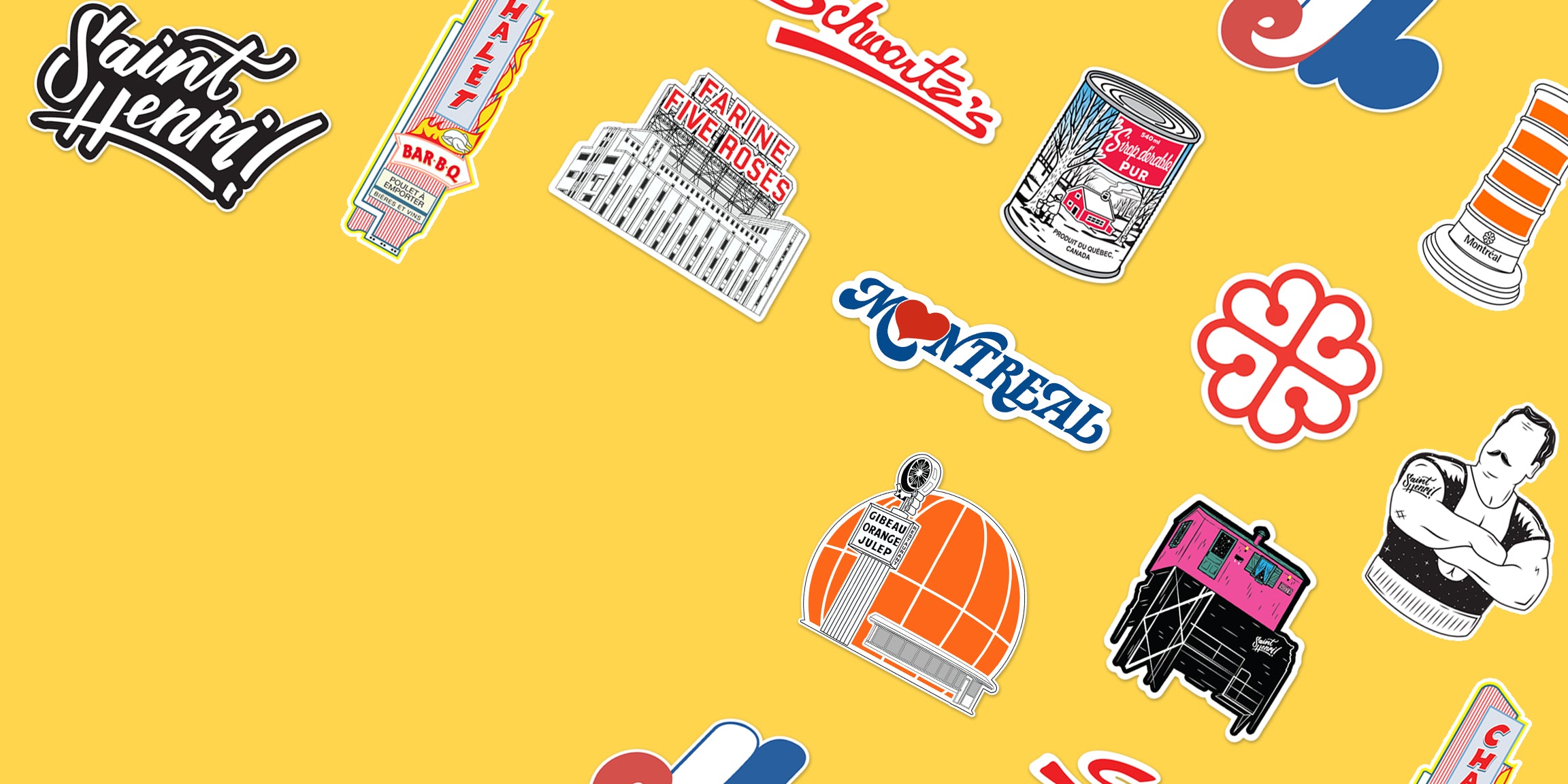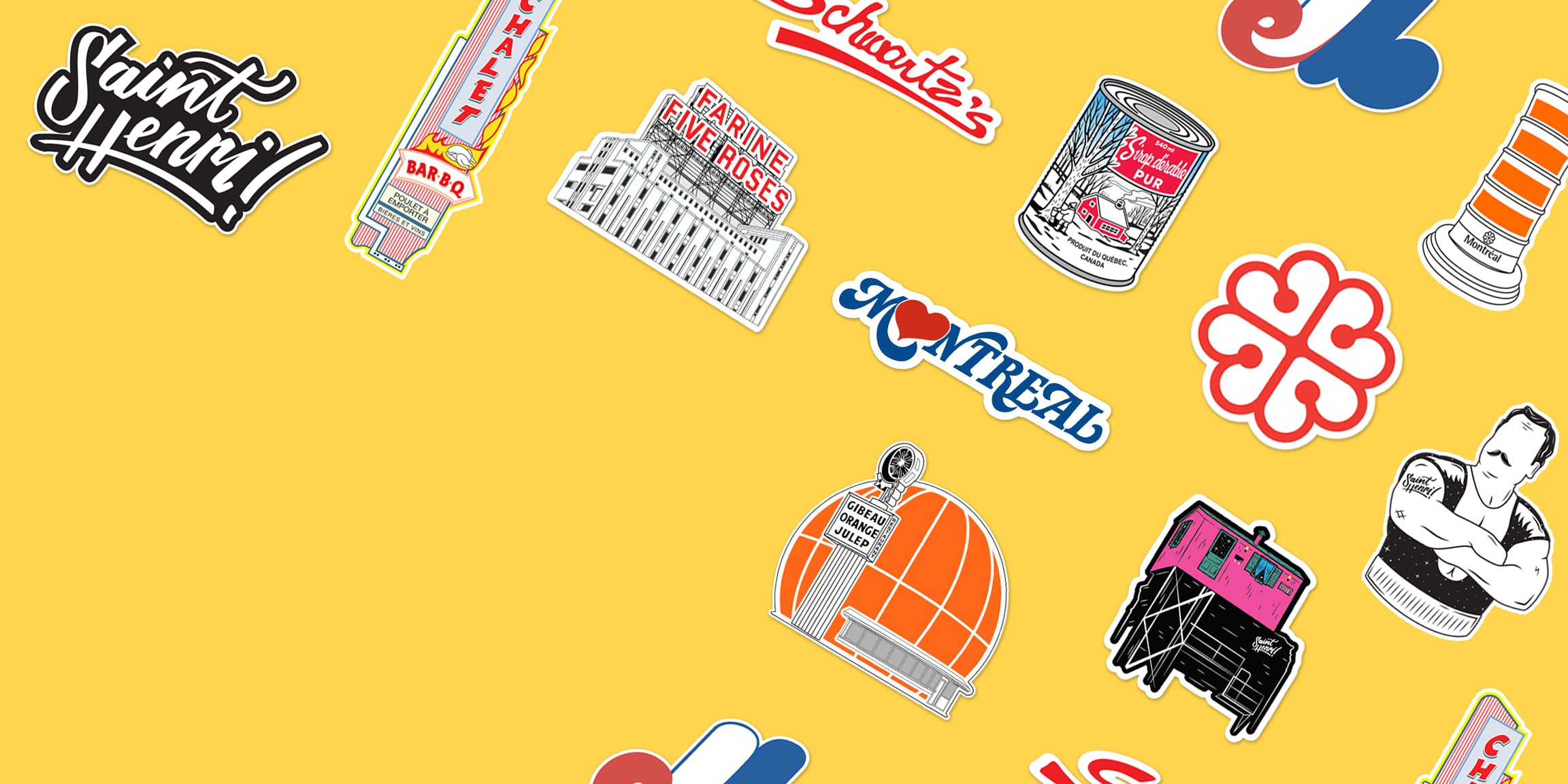 A collection of Montreal icons, reimagined as bold, durable vinyl stickers. Made to stick with you—wherever you go.